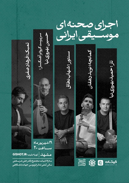 سرپرست گروه و آهنگساز: حسین بهروزینیا کمانچه: نوید دهقان تار: حمید بهروزینیا سنتور: شهاب نطاق تمبک: فرهاد صفری